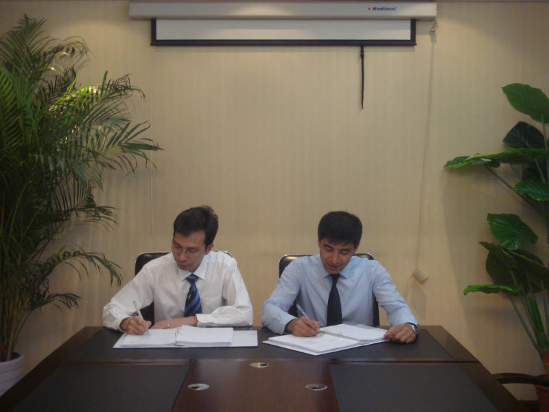 On June 16, Sinoma Tianjin officially signed EPC contract for Tajikistan 1000t/d cement production line project with Vakhdat Cement Company. Mr. Zeng Nianming, Marketing director of Sinoma Tianjin and Mr. RAKHMONI JAMSHED, representative of Vakhdat Cement Company respectively signed on the contract. Mr. Zhou Tianyi, project manager of International Marketing Department of Sinoma Tianjin and other employer’s representatives attended the signing ceremony.