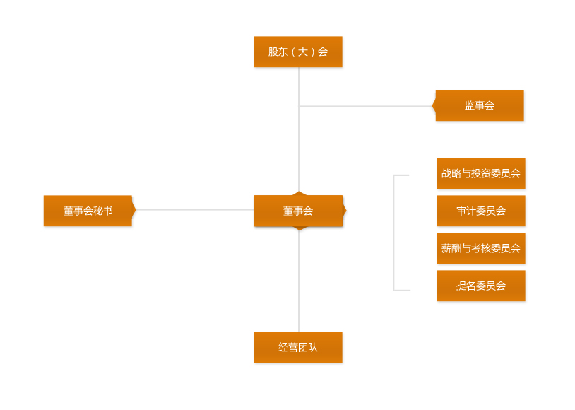 股東大會是公司最高權(quán)力機(jī)構(gòu),董事會作為決策機(jī)構(gòu)受股東委托決策公司的日常事項,董事會下設(shè)戰(zhàn)略與投資委員會、審計委員會、薪酬與考核委員會、提名委員會,為董事會提供專業(yè)決策意見。監(jiān)事會受股東委托監(jiān)督董事會和經(jīng)營團(tuán)隊的行為,經(jīng)營團(tuán)隊受董事會聘任負(fù)責(zé)公司的日常生產(chǎn)經(jīng)營活動。董事會秘書是董事會的日常辦事機(jī)構(gòu)。