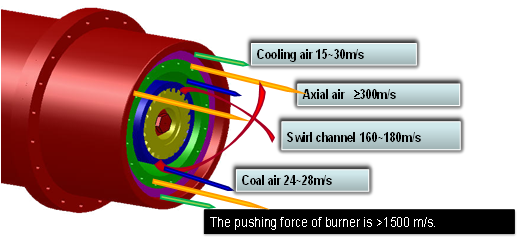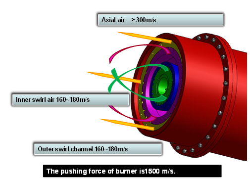 在此基礎上,為進一步加強燃料的適應性,公司又開發了雙旋流的高性能大推力低一次風量燃燒器,在工程應用中取得了很好的效果。
