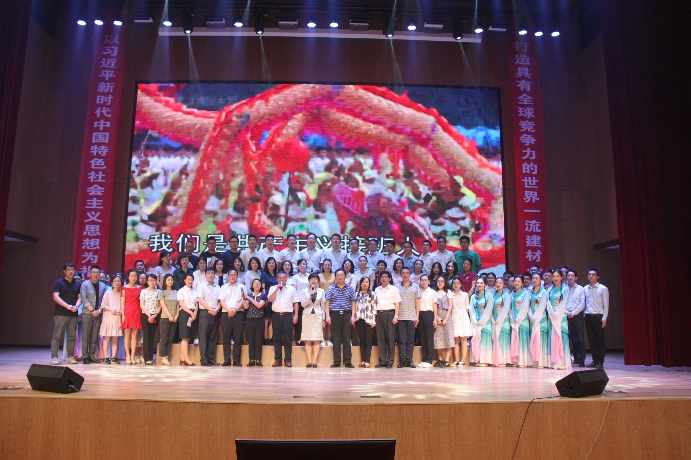 會議集中學習了習總書記5月2日在北京大學師生座談會上的重要講話,開展了“青年大學習”主題團日活動。與會團員青年到侵華日軍南京大屠殺遇難同胞紀念館、雨花臺烈士陵園接受了一次深刻的愛國主義教育。晚上,參會人員自編自演了一臺精彩的聯歡晚會。《團緣配音show》歡笑不斷,配樂詩朗誦《青春中國》激情澎湃,取自詩經的舞蹈《采薇》優美迷人,歌曲《追夢赤子心》《追光者》《can you feel my love tonight》《貝加爾湖畔》《真心英雄》等展現了廣大青年積極進取、奮發有為的激情與活力。最后,集團領導和各成員單位代表、演職人員合唱《共產主義接班人》,為此次會議畫上了圓滿的句號。