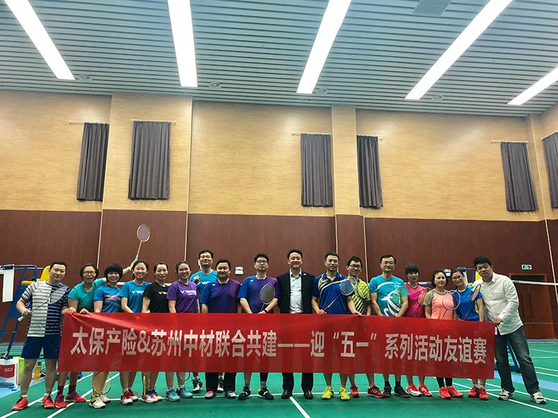 4月24日至27日,蘇州中材工會與黨建聯(lián)合單位——太保產(chǎn)險工會聯(lián)合組織了迎“五一”友誼賽活動。進(jìn)行了羽毛球、拔河等比賽,增進(jìn)了雙方友誼。