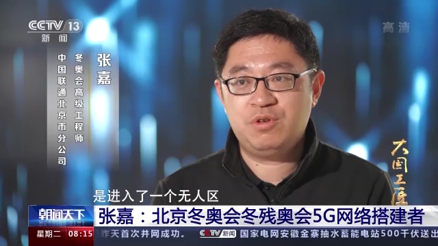 中國聯通北京市分公司冬奧會高級工程師 張嘉:這屆奧運會我們進入了一個5G的時代,其實中國的5G是進入了一個無人區,也就是說我們沒有去追隨的對象沒有去模仿的對象。