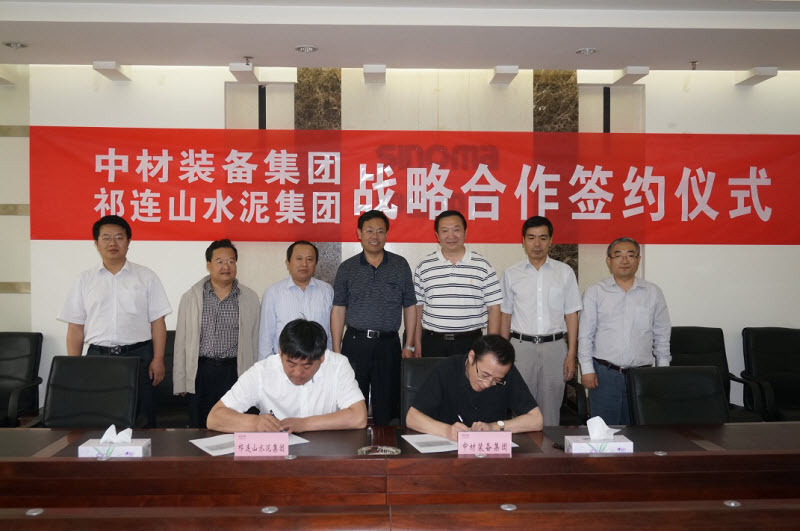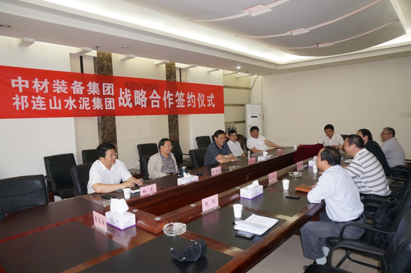 5月30日,甘肅祁連山水泥集團股份有限公司同中材裝備集團有限公司戰略合作協議在蘭州祁連山集團總部舉行。祁連山集團董事長脫利成,總裁劉繼彬,副總裁李生鈺、劉開祿,財務總監楊虎和集團董事長宋壽順,副總經理陳慶十,市場總監劉運水,備件公司總經理侯龍華等相關人員參加了簽約儀式。