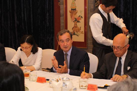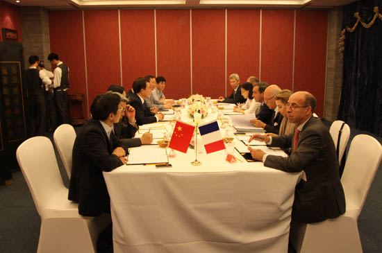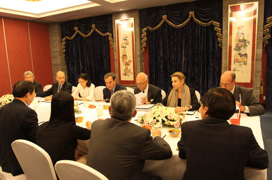 拉法基集團執行副總裁Jean DESAZARS、Christian HERRAULT、Alexandra Rocca,拉法基集團戰略投資經理Jean-Louis TOUATI,拉法基中國首席執行官Sylvain Garnaud ;中材股份副總裁、董事會秘書顧超,中材股份副總裁、中材國際董事長王偉,中材國際副總裁、中材裝備集團董事長宋壽順,中材國際副總裁、中材國際天津公司董事長彭建新,中材國際副總裁童來茍等參加會談。