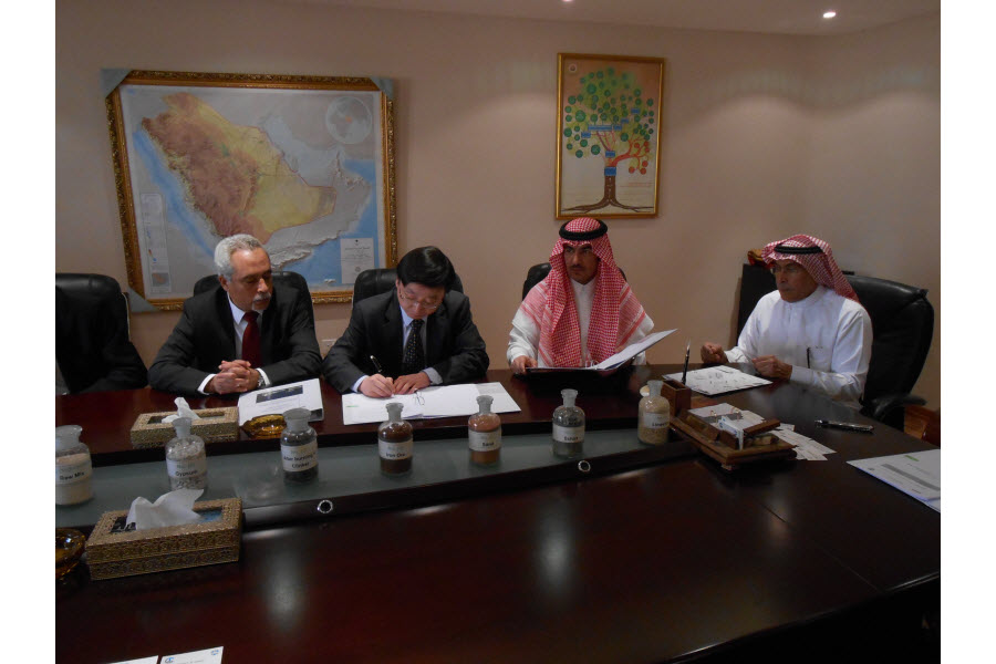 塔布克水泥公司董事長Mr. Khaled Al Shathry和成都院有限副總經理陳濤出席了簽字儀式并代表雙方簽署了合同。