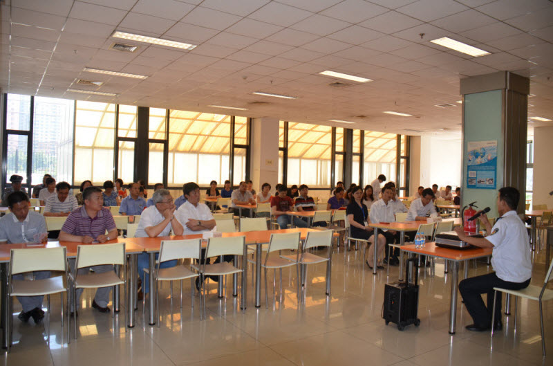 隨后,北京消防宣講中心教官進行了安全培訓,通過慘痛的事故案例說明了火災后果的嚴重性,警示員工要時時注意預防火災,并結合實際講解了火災逃生方法、滅火器材正確使用方法。