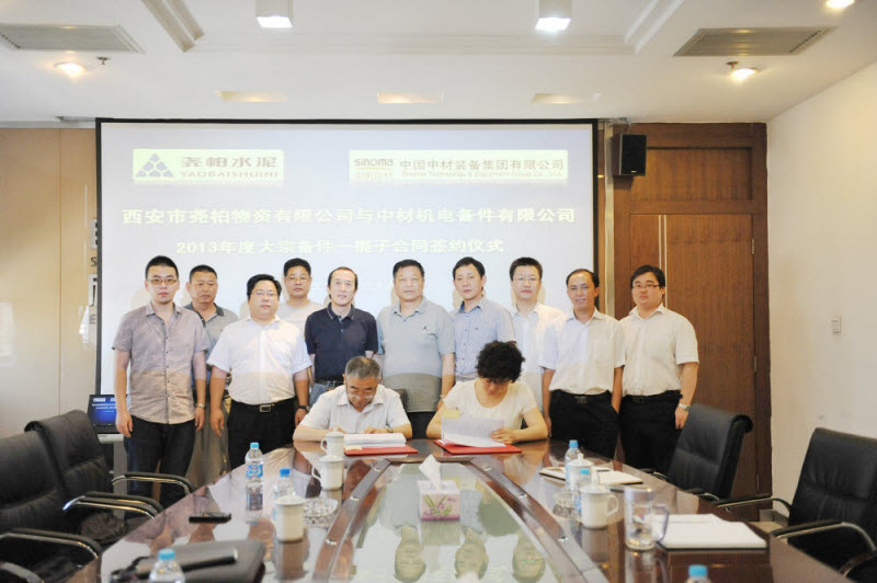 近日,西安市堯柏物資有限公司與中材裝備集團中材機電備件有限公司2013年度第一批大宗備件供貨服務合同簽約儀式在堯柏水泥集團本部舉行,涉及合同總金額4000萬元,是雙方自2008年首度簽約以來的第六次合作,標志著雙方在備品備件及生產線運營保障一攬子服務方面構建起了互信、共贏的忠誠戰略合作伙伴關系。