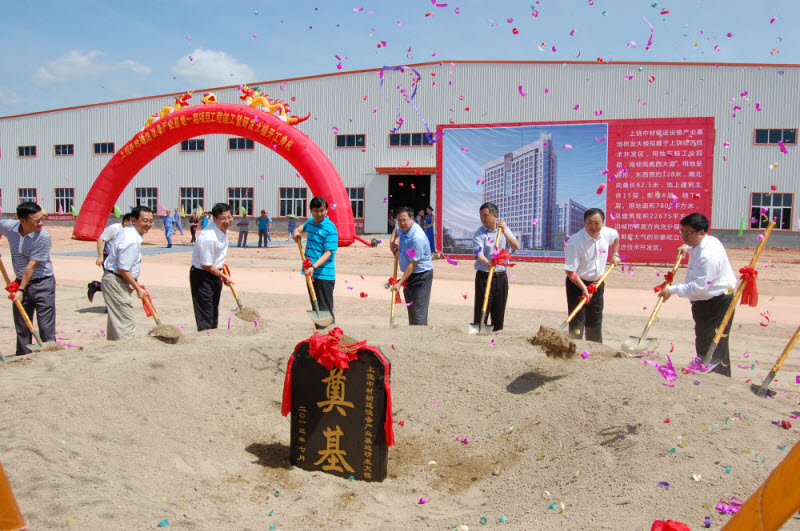 最后,劉峰宣布上饒中材研發大樓正式開工。在一片祥和的氛圍中,與會領導同擎金鍬,為上饒中材研發大樓奠基。