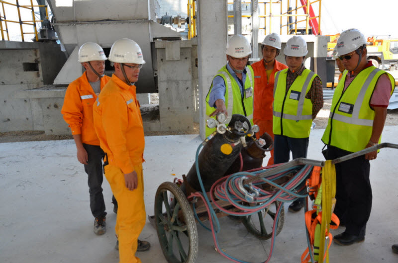 賀嵐曦一行經(jīng)入場安全培訓(xùn)后,深入、細(xì)致地檢查了項(xiàng)目現(xiàn)場高空作業(yè)、腳手架、基坑臨邊防護(hù)、危化品使用及存儲(chǔ)、電焊機(jī)使用、臨時(shí)用電、起重作業(yè)、安全標(biāo)志及勞保用品配備等內(nèi)容,并和項(xiàng)目管理人員就安全管理方面的問題進(jìn)行了交流。在檢查總結(jié)會(huì)上,賀總首先代表中材國際領(lǐng)導(dǎo)班子向項(xiàng)目部全體員工表示親切慰問,并通報(bào)了集團(tuán)和公司今年的安全生產(chǎn)形勢,要求深刻反思,強(qiáng)調(diào)安全管理對項(xiàng)目的極端重要性,要體現(xiàn)國際企業(yè)的安全價(jià)值,同時(shí)就遵守所在國家地區(qū)法律法規(guī)、分包勞務(wù)管理、自覺管控,生命財(cái)產(chǎn)安全、溝通相關(guān)方關(guān)系、合同履約、開拓新的市場等方面給出了指導(dǎo)和建議。