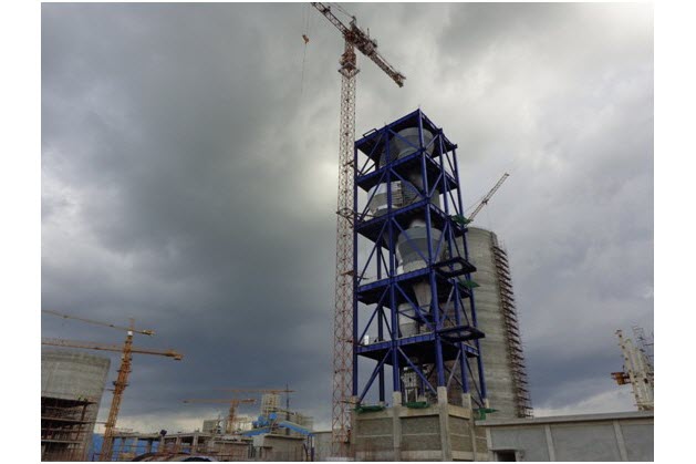 貝寧NOCIBE項目窯尾塔架從2013年5月26日下午開始第一吊的安裝,到近期順利封頂,在安裝過程中克服了大雨、高溫、大風等自然因素干擾,瘧疾等疾病對工人身體的影響及塔架后三層到貨晚且沒有樓梯井等困難。現場施工人員和管理人員默默付出,不驕不躁,任勞任怨,保證了塔架的安裝進度,為預熱器的安裝打好基礎。