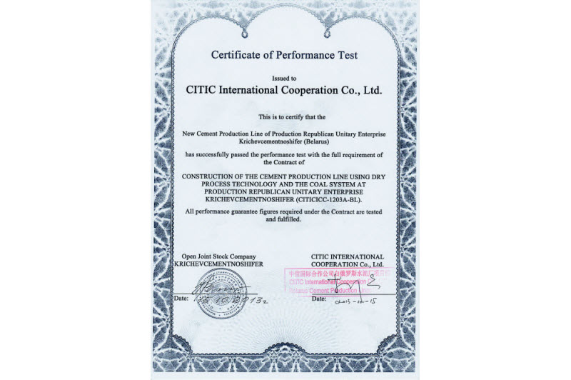 9月25日,由中材國際天津公司負責調試的白俄羅斯克里切夫5000t/d熟料干法生產線正式獲得甲方簽署的PAC證書,這標志該項目的技術服務工作圓滿完成。