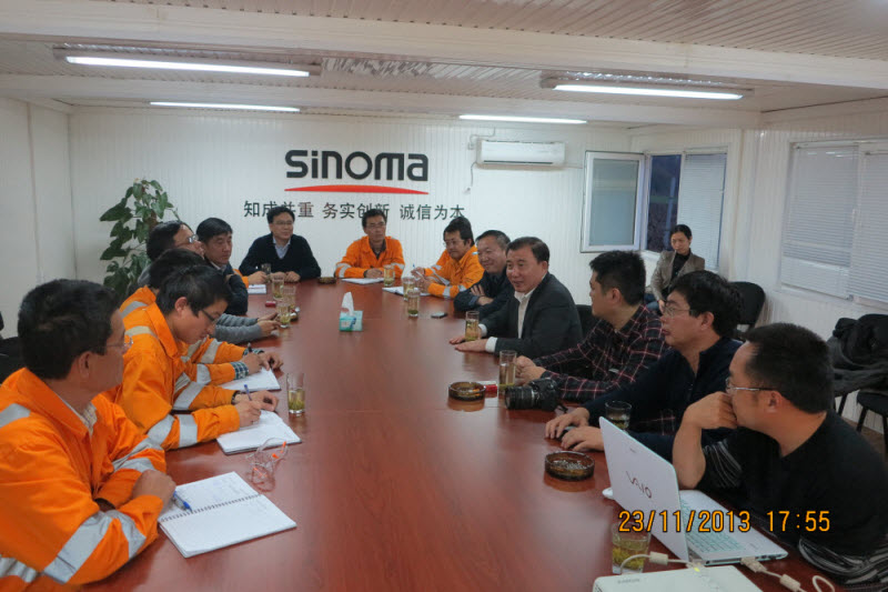 11月23日,中材集團董事長劉志江在中材國際天津公司董事長彭建新、副總經理王暉、運營總監姚天海的陪同下,蒞臨由中材國際天津公司承建的保加利亞項目指導工作。
