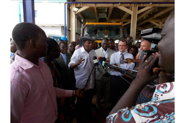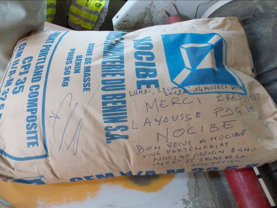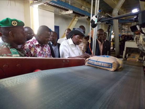 本次視察博尼•亞伊總統(tǒng)主要參觀了水泥包裝生產(chǎn)線,他親自操作啟動(dòng)了包裝機(jī),并在一袋水泥上簽名祝賀NOCIBE水泥生產(chǎn)線順利投產(chǎn)。