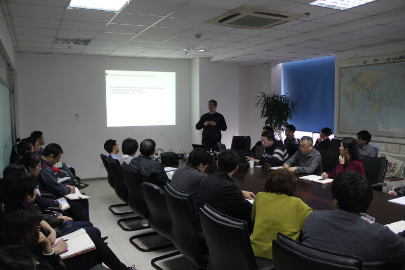 隨后,侯龍華首先感謝了海德堡集團對備件公司一直以來的支持與呵護,回顧了備件公司以往執行海德堡水泥集團工程項目的情況,并指出了在執行過程中顯現的問題。他指出,海德堡與國內企業合作所采取的質量控制措施是建立在中國的國家標準、行業標準驗或圖紙技術要求的基礎上,其質量要求并不是高于國內企業所能達到的水平,而是其對產品生產或項目執行的過程控制有著嚴格的要求,并提出公司全員要轉變以往對項目執行以及質量控制的認識;要根據主合同的質量要求制定明確的質量控制計劃和進度控制計劃;注重同業主和分包商各個層級加強信息渠道的建立溝通;通過與海德堡的合作,公司積累了工程項目管理和執行的經驗,要將這種經驗應用到日常工作中,尤其是在質量/進度控制方面,不斷提升公司自身參與國際競爭能力四個方面的要求。