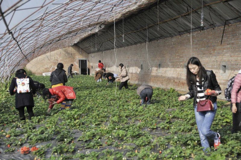 三月的天氣乍暖還寒,風和日麗的天氣讓參加活動的女同胞們興高采烈,歡聲笑語伴隨著整個行程。當大家來到種植草莓的大棚,陣陣清香撲面而來,一眼望去,只見綠綠的一片,下面零星散落著紅艷艷的草莓,煞是好看。初看很少,但彎腰仔細一瞧,很多都調皮的藏在葉子下面,像小紅燈籠一樣,鮮嫩欲滴,好像在說“快來,快來,我們成熟了,非常好吃呢!”,大家都被這累累的草莓果實“誘惑”了,爭先恐后的投入到采摘之中。