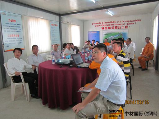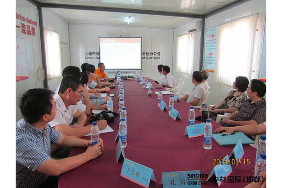 當(dāng)?shù)貢r(shí)間3月15日10時(shí),中華人民共和國駐喀麥隆使領(lǐng)館在中材國際工程股份有限公司邯鄲工程建設(shè)分公司喀麥隆項(xiàng)目部隆重召開駐喀中資企業(yè)交流會(huì),近20家中資企業(yè)代表歡聚一堂。與會(huì)企業(yè)有中材國際、中石化、中地海外、中國港灣、中交、山西建工、華山國際、沈陽國際、山東科瑞、華為等30多名代表參會(huì)。喀麥隆項(xiàng)目經(jīng)理張義、黨支部書記趙書啟、安裝經(jīng)理丁光雄、安全經(jīng)理王先平等參加了本次會(huì)議。