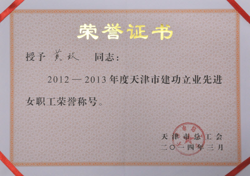 日前,天津市總工會召開了天津市女職工建功立業(yè)先進(jìn)座談會,并網(wǎng)發(fā)了《天津市總工會關(guān)于表彰2012—2013年度天津市“建功立業(yè)先進(jìn)女職工”、“女職工建功立業(yè)示范崗”、“女職工建功立業(yè)優(yōu)秀組織單位”的決定》(津工發(fā)〔2014〕7號),對天津市建功立業(yè)先進(jìn)女職工給予了表彰,中材裝備集團(tuán)散料技術(shù)裝備研究所黃玫同志被授予“2012-2013年度天津市建功立業(yè)先進(jìn)女職工”榮譽(yù)稱號。