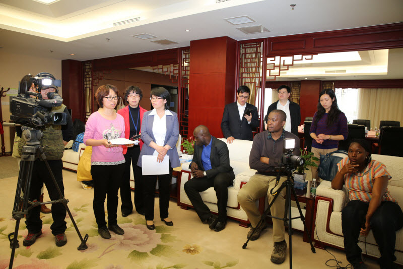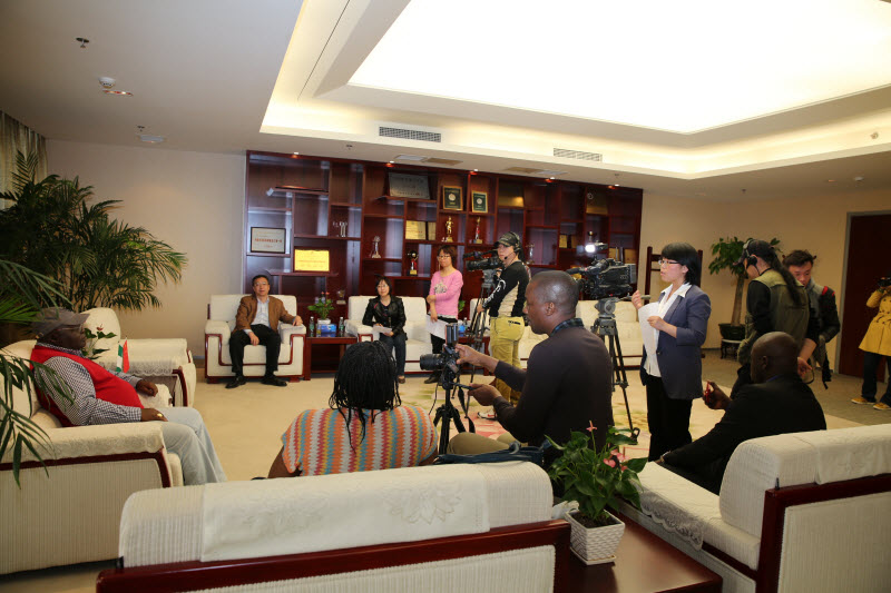4月12日上午,參加完由公司主辦的中材“尼日利亞杯”足球友誼邀請賽開幕式后,尼日利亞駐華大使Patrick Olusola Onadipe先生一行在各位領導的陪同下,參觀了中材國際天津公司亦莊辦公樓。隨后,他在中材國際天津公司貴賓室接受了尼日利亞國家電視臺中國區總編輯朱莉埃塔、《中國建材》執行主編譚俊明及中國建材報總編輯孟憲江等多位中外記者的采訪。