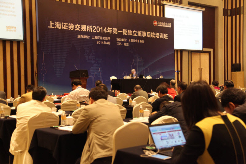 由上海證券交易所主辦、董事會雜志社承辦的2014年第一期獨立董事后續培訓班于4月21日-22日在南京舉辦。中材國際董事長王偉先生作為特邀講師以上市公司董事會文化建設為主題與滬市上市公司的兩百余位獨立董事進行了觀點分享與交流,具體內容圍繞上市公司董事會文化建設的必要性、董事會文化建設現狀及董事會文化建設方向及途徑等方面展開。王偉董事長認為上市公司董事會文化的核心是責任、規范、獨立與包容,圍繞這些核心價值觀建設首先應從股權結構、治理制度及激勵約束機制等方面下功夫。公司蔣中文副總裁陪同參加。