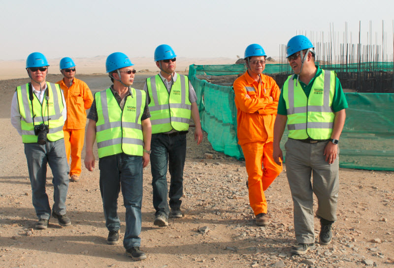5月7日上午,中材國(guó)際副總裁賀嵐曦到中材國(guó)際天津公司承建的沙特UCIC項(xiàng)目檢查指導(dǎo)安全工作,中材國(guó)際安全管理部部長(zhǎng)孫成林及中材國(guó)際天津公司副總經(jīng)理石穩(wěn)龍、安全管理部部長(zhǎng)劉波等一同檢查。