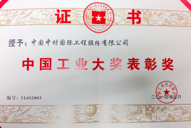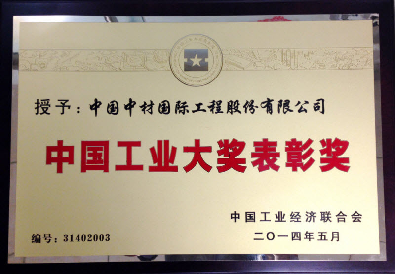 5月17日,“第三屆中國工業(yè)大獎”表彰大會在人民大會堂隆重舉行,中國工業(yè)經(jīng)濟聯(lián)合會名譽會長徐匡迪,中國工業(yè)經(jīng)濟聯(lián)合會會長、中國工業(yè)大獎審定委員會主任李毅中等出席大會,并為獲獎的企業(yè)和項目頒獎。中材國際榮獲本屆“中國工業(yè)大獎表彰獎”。公司副董事長、黨委書記于興敏出席表彰大會并上臺領(lǐng)獎。