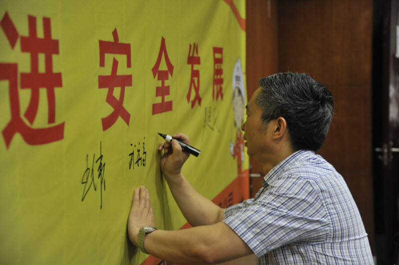 會后,主會場全體參會人員在“強化紅線意識,促進安全發展”的主題橫幅上進行了安全簽名承諾。
