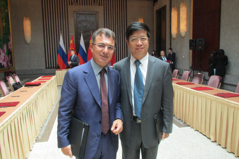 5月20日,中材國際天津公司總經理徐培濤應邀出席了在上海舉辦的亞洲相互協作與信任措施會議第四次峰會(亞信峰會)中俄元首見簽活動。此次活動是由國家主席習近平、俄羅斯總統普京共同主持。除簽訂政府間合作協議外,在中國國家主席習近平及俄羅斯總統普京的共同見證下,中材國際天津公司總經理徐培濤先生與俄羅斯歐洲水泥公司董事長加里切夫先生簽署了米哈伊洛夫(10000t/d)水泥生產線項目的EPS框架合同。見簽活動后,習近平主席與普京總統共同會見中俄雙方企業家并合影留念。