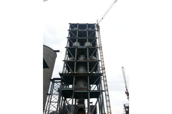 今年雨季時間長、氣候變化大,加之業主的特殊要求,給項目施工增加了很大難度,湖南海螺項目經理部精心組織,合理安排施工程序,狠抓安全,嚴把質量,按照公司《窯尾框架防護標準》做好各項安全防護措施,并制訂了科學合理的施工技術方案,在項目部全體員工的共同努力下,窯尾框架最終順利封頂。