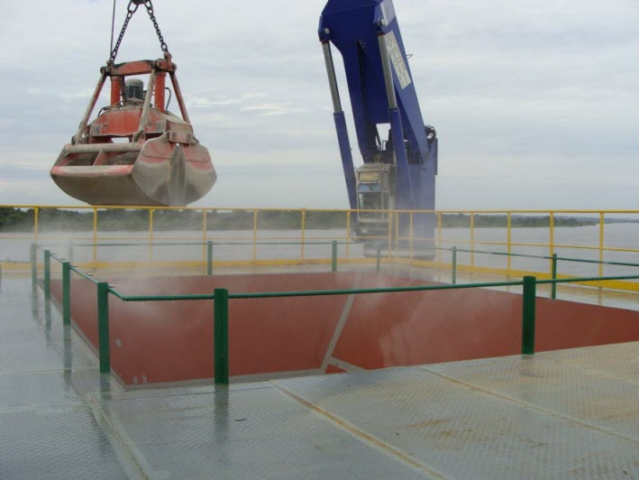 2014年5月30日下午,Tupi項目趕在南美中部雨季來臨之前,順利完成了碼頭抓斗吊車到原料堆取料機的試車工作。