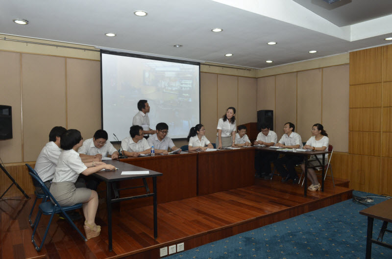 本次英語培訓班分為A班和B班,共有25名學員參加。學員們在匯報演出中將日常工作與英語學習有機結合,通過情景模擬、角色扮演等形式,展示了自己的學習成果。A班學員將與業主的技術談判搬上舞臺。12名學員分別扮演業主和公司代表,聲情并茂地就水泥廠建設過程中可能遇到的技術問題進行了討論,并對可能出現的極端氣候問題提出了解決方案,討論話題涉及到氣候環境、地理區位、工廠布局、費用預算以及工程施工中的各項細節。在談到地理區位時,學員列舉了西藏高天水泥廠等實例,證明我公司的技術攻關能力。B班學員模擬了公司年會籌備會議,他們用流利的英語就公司年會舉辦地點、形式及內容進行了激烈討論。大家全情投入,爭先孔后地表達自己的觀點。在談到年會中要表演哪些節目時,學員們情不自禁地哼起歌曲。整場匯報表演既展現了學員們流利的英語表達能力,又不乏風趣幽默。