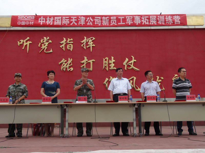 7月22日下午,中材國際天津公司舉行了2014年新員工軍訓匯報表演儀式。天津公司黨委副書記陳増福、副總經理劉劍英、人力資源部部長李維柱,中國人民解放軍66459部隊副參謀長孫堅、司令部參謀張景平、北京大學經濟研究所博雅錦培訓中心主任廖爍文出席了儀式。陳增福和孫堅在儀式上作講話,張景平主持儀式。
