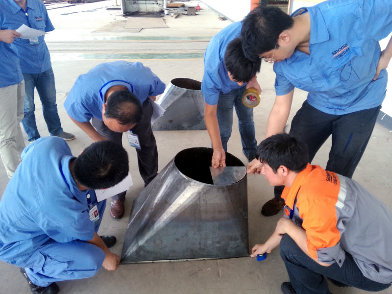 當天的鉚工崗位技能競賽考察“天圓地方”的制作,要求參賽者在熟練掌握鉚工基礎知識和技能的基礎上,能看懂圖紙,能計算展開料長,畫出復雜構件的放樣圖,能根據工藝圖的技術要求制定裝配、焊接、鉚接和矯正工藝方案,制作簡裝工夾具;熟悉新技術、新材料、新工藝以及相關工種銜接的知識等。經過緊張激烈地比賽,9月3日,評委組評選出本次活動前三名,并發給獲獎證書和獎勵。