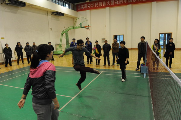 此次比賽采取團(tuán)體對抗賽的方式,共有26個(gè)隊(duì)伍100余名隊(duì)員參加。由于隊(duì)伍數(shù)量較多,比賽一開始就進(jìn)入了殘酷的淘汰賽,再加之訓(xùn)練時(shí)間比較緊張,對規(guī)則也不是非常熟悉,各隊(duì)都抓緊利用業(yè)余時(shí)間展開練習(xí)。雖然客觀不利因素較多,但是也促進(jìn)了各隊(duì)團(tuán)隊(duì)意識的增強(qiáng)和凝聚力的提升。在比賽中,各隊(duì)隊(duì)員們都精神飽滿,用敏捷的身姿、嫻熟的技巧和默契的配合贏得了在場觀眾的陣陣掌聲。