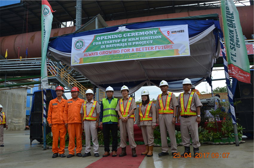 4月25日上午9時,由天津水泥院承建的印尼Baturaja項目回轉窯成功點火。天津水泥院副總經理孫金亮、項目總監李振興、客戶服務中心副主任周履平及項目經理趙永剛與業主董事會高層一起參加了點火儀式,共同見證了這一激動人心的時刻。