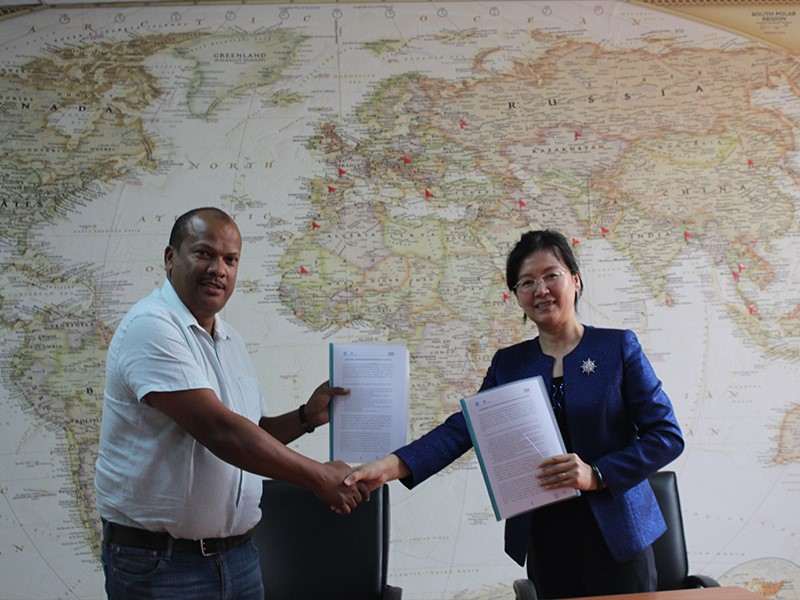 海外公司安哥拉項(xiàng)目經(jīng)理王雪梅與業(yè)主項(xiàng)目經(jīng)理Mr.Kurt簽署PAC證書(shū)
