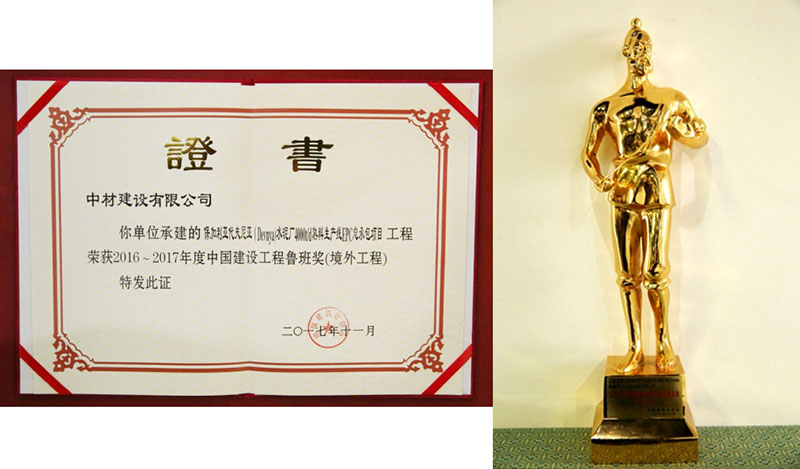 2017年11月6日,由中國(guó)建筑業(yè)協(xié)會(huì)主辦的紀(jì)念魯班獎(jiǎng)創(chuàng)立30周年暨2016~2017年度創(chuàng)精品工程經(jīng)驗(yàn)交流會(huì)在北京釣魚(yú)臺(tái)國(guó)賓館隆重舉行,中材建設(shè)保加利亞代夫尼亞(Devnya)水泥廠(chǎng)4000t/d熟料生產(chǎn)線(xiàn)EPC總承包項(xiàng)目(以下簡(jiǎn)稱(chēng)“保加利亞Devnya項(xiàng)目”)榮獲“中國(guó)建設(shè)工程魯班獎(jiǎng)(境外工程)”。中材建設(shè)常務(wù)副總經(jīng)理王暉、保加利亞Devnya項(xiàng)目經(jīng)理王彬、質(zhì)量控制部部長(zhǎng)耿鋒濤出席本次會(huì)議,王暉代表中材建設(shè)上臺(tái)領(lǐng)獎(jiǎng)。