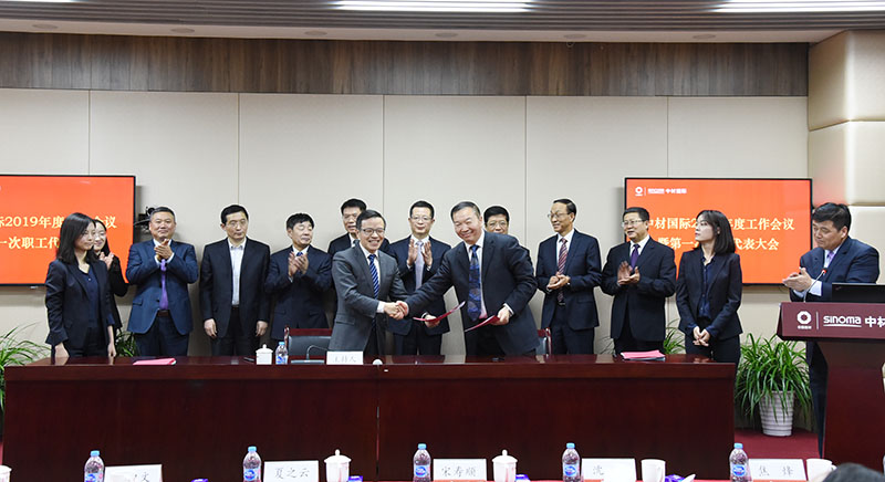 1月29日,中國建材集團董事長、黨委書記宋志平,中國建材集團總經理、黨委常委,中國建材股份董事長、黨委書記曹江林出席中材國際2019年工作會議。