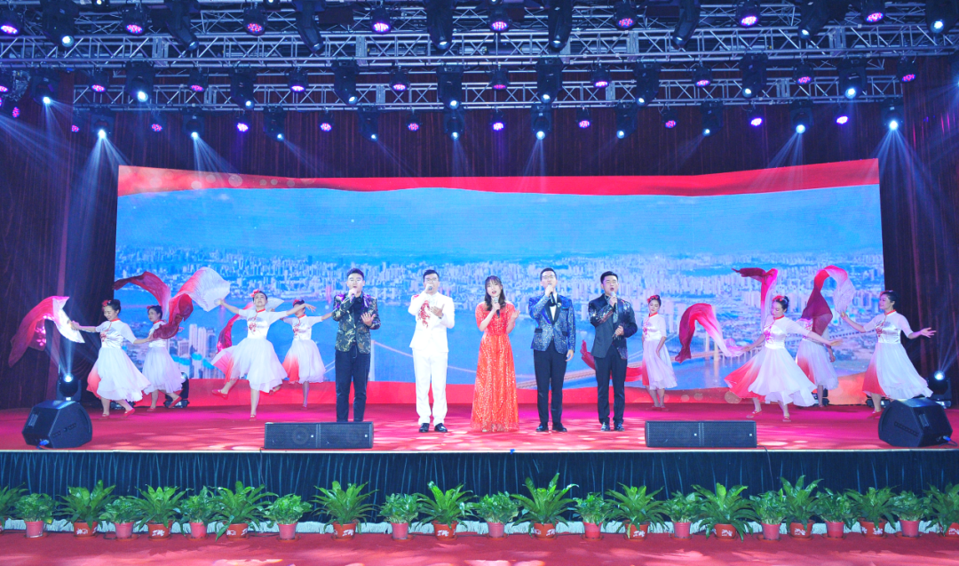 嘹亮紅歌唱響崢嶸歲月,奮進旋律展現今朝風采。“奮斗百年路 啟航新征程”慶祝建黨100周年文藝匯演在絢麗多彩的歌舞《新的天地》中拉開帷幕??犊ぐ旱呐錁吩娎收b《黨旗下的誓言、最美逆行者》《青春中國》、優美動聽的女聲獨唱《黨旗更鮮艷》、美輪美奐的舞蹈《燈火里的中國》、精彩演繹的快板《說黨史、頌黨恩》、青春昂揚的大合唱《少年》、氣勢恢宏的歌舞《百年贊禮—我把歌舞獻給黨》,精彩紛呈的節目不斷將現場氛圍引向高潮,淋漓盡致的表演贏得了現場觀眾陣陣掌聲。最后,文藝匯演在全體與會人員現場大合唱《沒有共產黨就沒有新中國》中圓滿落幕。整場演出唱出了激情,舞出了干勁,激勵廣大職工以更加昂揚的斗志攜手奮進,共同創造中材國際更加輝煌的明天!