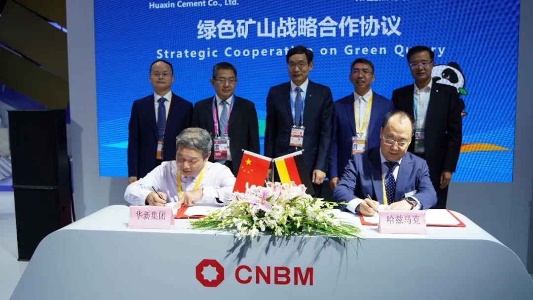 進(jìn)博會(huì)首日,中國建材集團(tuán)組織了“綠色低碳集中簽約”活動(dòng),公司所屬哈茲馬克、南京凱盛分別與華新水泥、施耐德簽署戰(zhàn)略合作協(xié)議,商務(wù)部歐洲司司長翟謙、中國建材集團(tuán)黨委書記、董事長周育先、中國建材股份副總裁余明清見證了合作簽署。