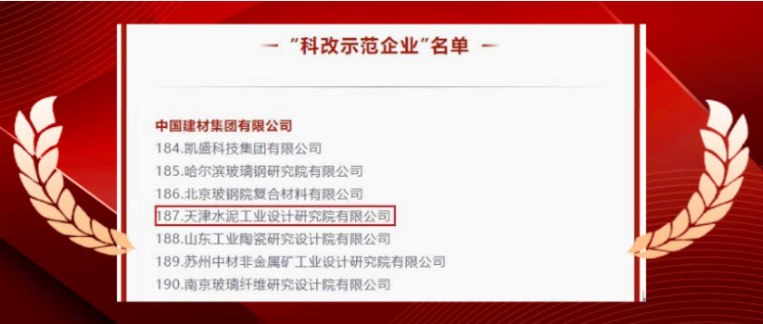 日前,國務(wù)院國有企業(yè)改革領(lǐng)導(dǎo)小組辦公室公布最新“科改示范企業(yè)”名單,中材國際所屬天津水泥院成功入選。
